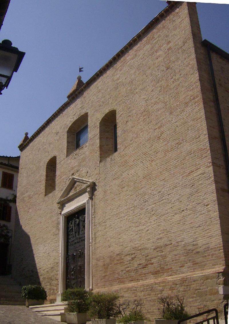 Situata al centro del paese, nella piazzetta attigua alla porta di accesso Porta Penta, sovrastata dalla torre di San Giorgio. Struttura in laterizio caratterizzata da una semplice facciata rettangolare, sul cui coronamento orizzontale emergono tre pinnacoli piramidali. Al centro un sobrio portale in pietra con timpano sostenuto da due mensole decorate. Al di sopra del portale tre finestre strombate con archi ribassati. La pianta è rettangolare absidata, con la successione di tre campate coperte dalle ampie volte a botte con lunette, la cui spazialità è evidenziata dal semplice intonaco monocromatico. Sulle pareti laterali si aprono finestre ad arco ribassato con profonda strombatura. Nel presbiterio emergono il coro ligneo e tre tele incorniciate da elementi barocchi stuccati in bianco. Sulla facciata posteriore il campanile a vela in laterizio con bifora.