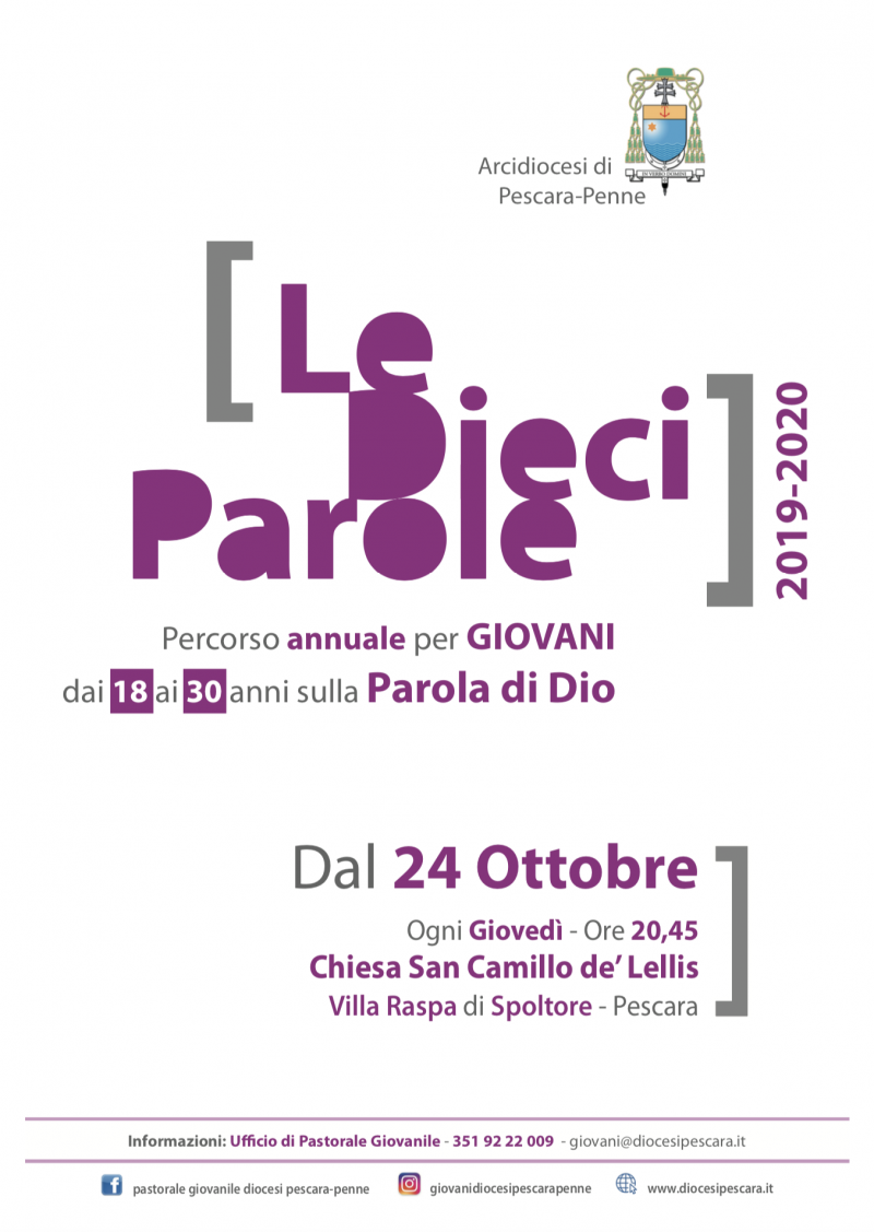 Inizierà il 24 ottobre il percorso di catechesi “Le dieci Parole”. Il cammino, della durata di un anno, che si svolgerà ogni venerdì, alle 20.45, presso la Chiesa San Camillo de’ Lellis in Villa Raspa di Spoltore (PE).